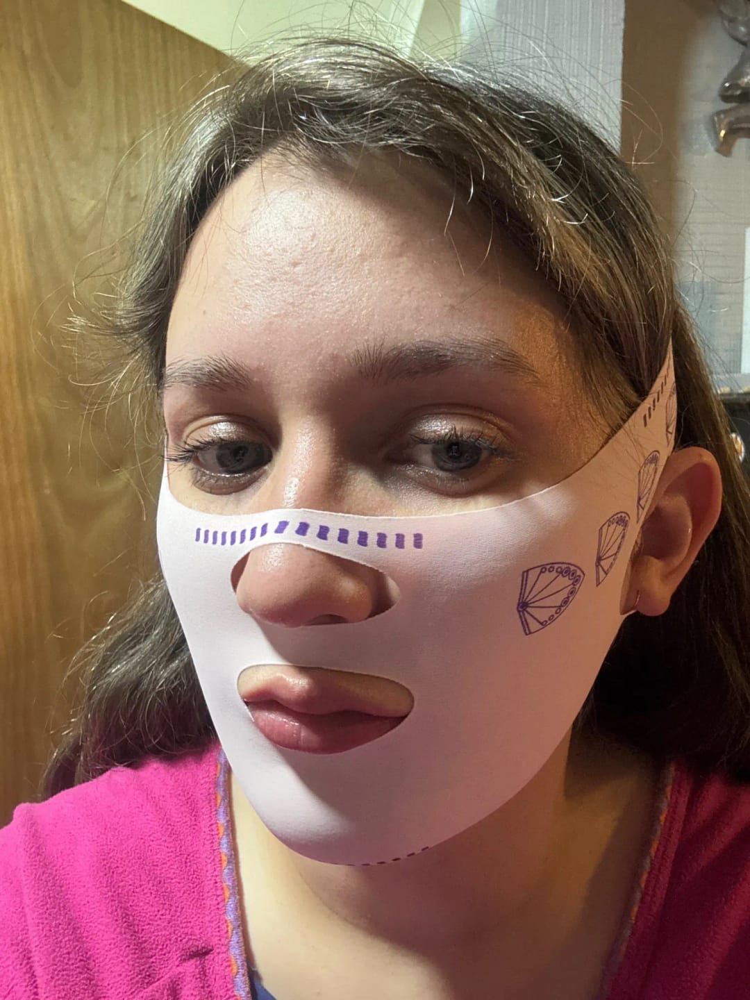 The strap gently hugs the jawline while you sleep, which may help the lower-face area appear less puffy by morning.